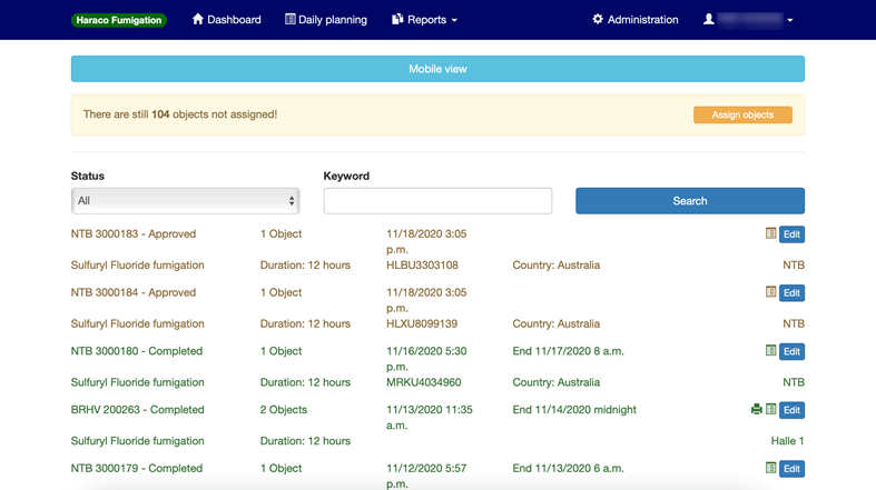 HARACO emphasises on innovation and constant improvement of its methods. This is in order to improve Productivity, Workplace Safety and Environment Consciousness. Together with its IT partner, it has developed a Fully Automated Fumigation Software, which is very practical and user-friendly. Tasks are launched, Data is inserted, Certificates are issued, all with a simple click. Human error is reduced significantly.